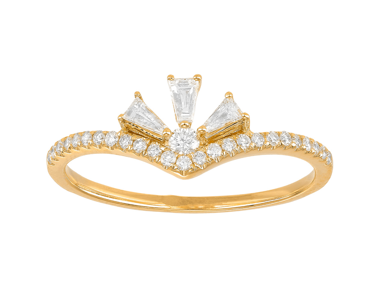 Bague éventail, diamants ronds et tapers 0,32ct, Or jaune 18k, doigt 54