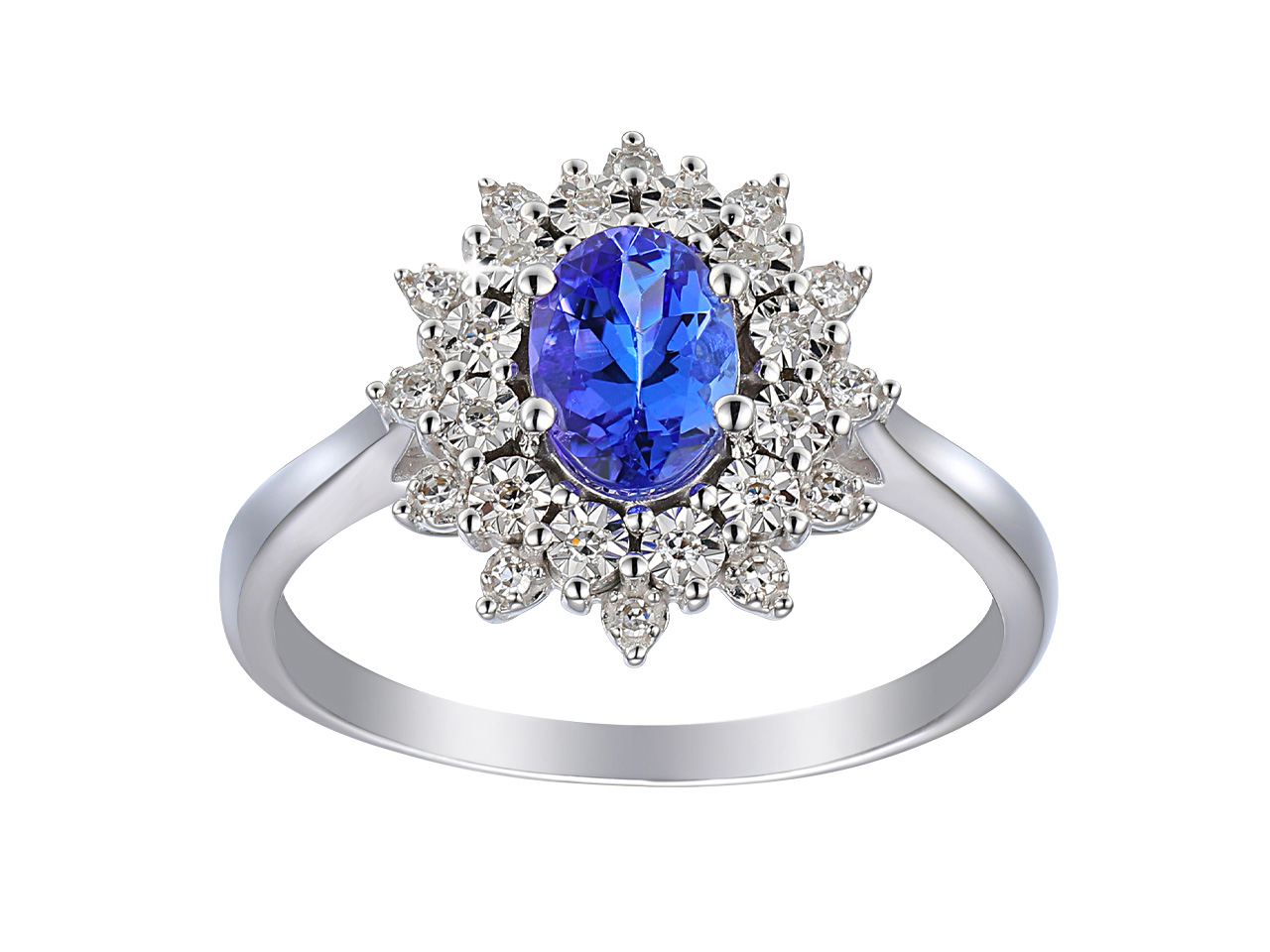 Bague Riviera 12 x 14 mm, tanzanite ovale 0,96ct et diamants 0,09ct, Or gris 18k, doigt 56 - XMFRA04J