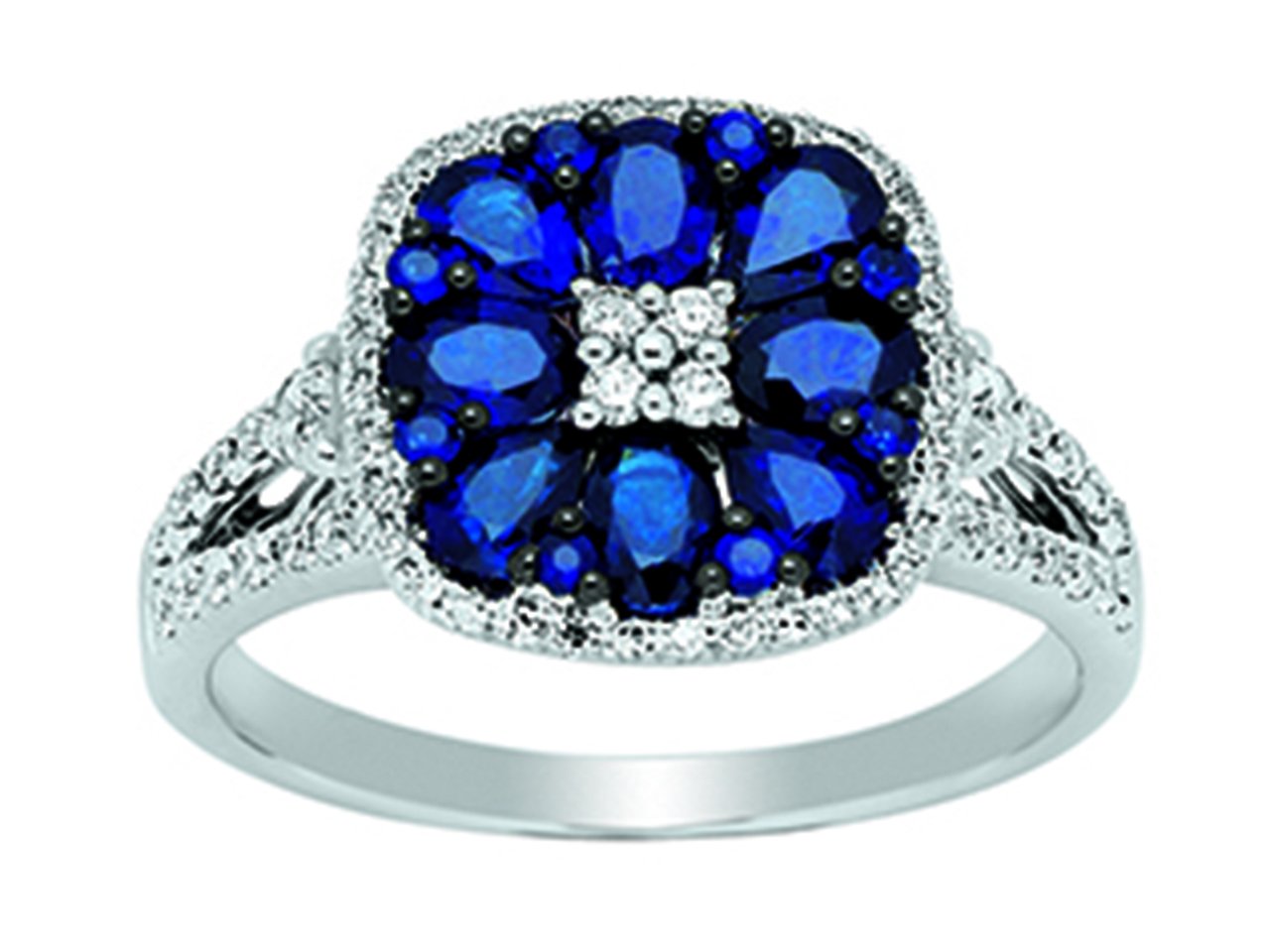 Bague Saphirs 1,60ct, diamants 0,63ct, Or gris 18k, doigt 56 - XMFR309J