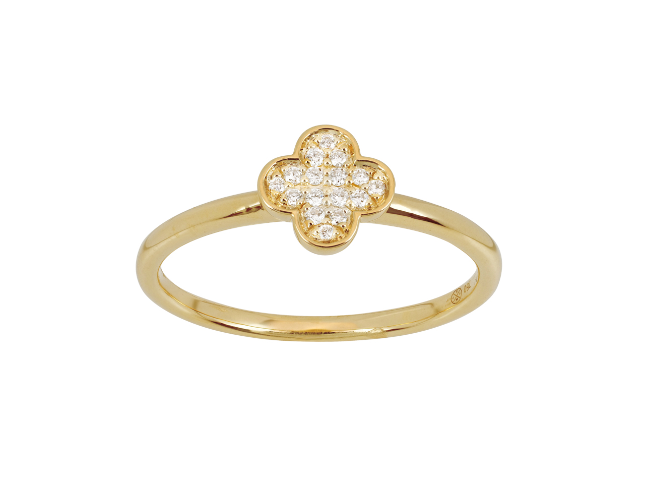 Bague motif Trèfle 6 mm, diamants 0,06ct, Or jaune 18k, doigt 52 - XLFR876F