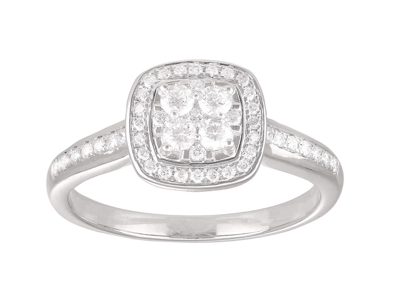 • Bague motif carré, corps serti diamants 0,38ct, Or gris 18k, doigt 54 - Image Standard - 1