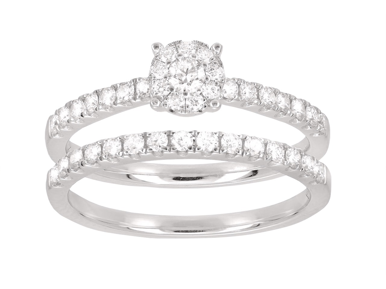 • Bagues solitaire et alliance, diamants 0,57ct, Or gris 18k, doigt 52 - Image Standard - 1