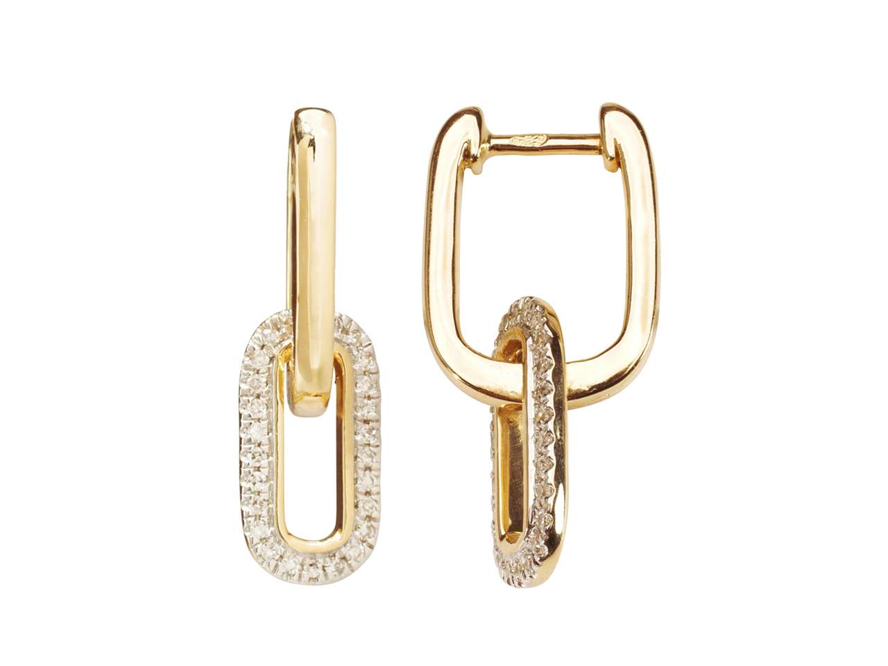 Boucles d'oreilles pendantes motif Rectangles, hauteur 20 mm, diamants 0,15ct, Or jaune 18k - XLFR9266