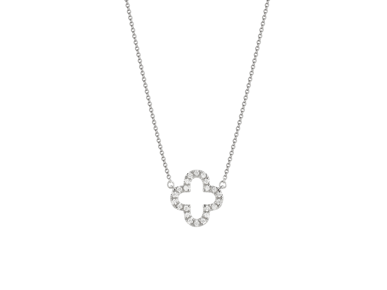 Bracelet motif Trèfle ajouré 10 x 11 mm, diamants 0,08 ct, 40-42,5-45 cm, Or gris 18k - VMFRA383