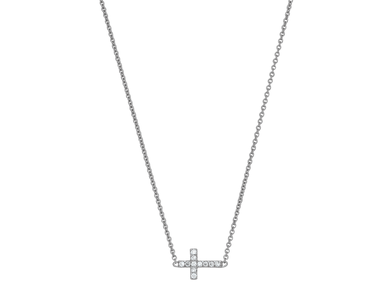 Collier Croix sur chaîne diamants 0,04ct, 38-40 cm, Or gris 18k - Image Standard - 1 Collier Croix sur chaîne diamants 0,04ct, 38-40 cm, Or gris 18k - Image Standard - 2
