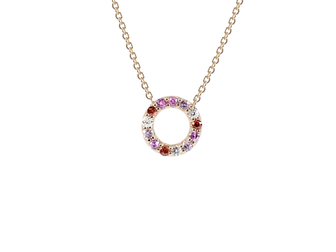 Collier cercle rainbow 10 mm, diamants 0,06ct, saphirs roses et oranges 0,27ct, 40-42-5 cm, Or rose 18k - VOFRA349