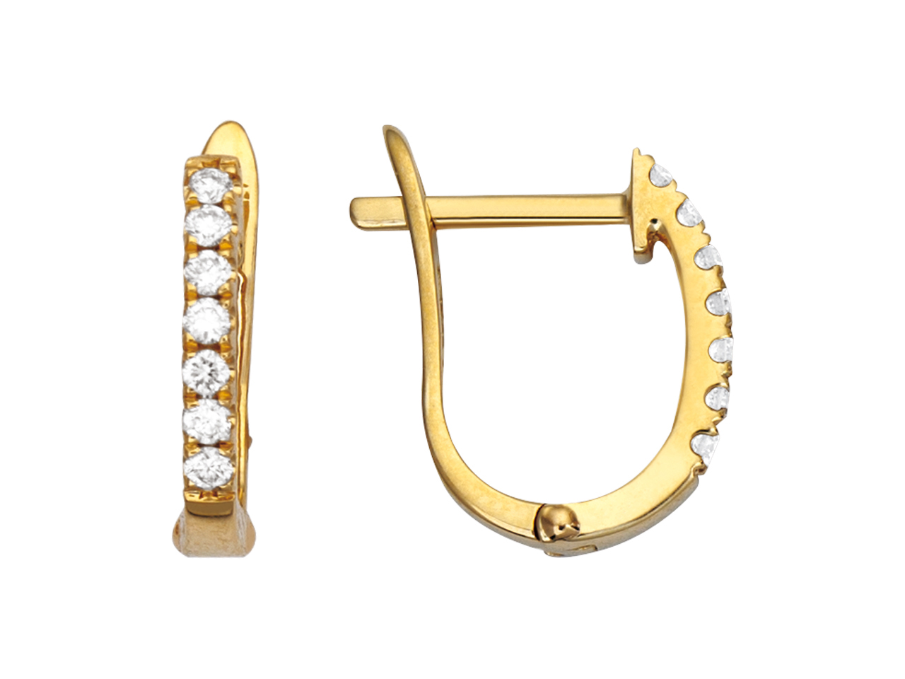 Créoles ovales, diamants 0,12ct, Or jaune 18k