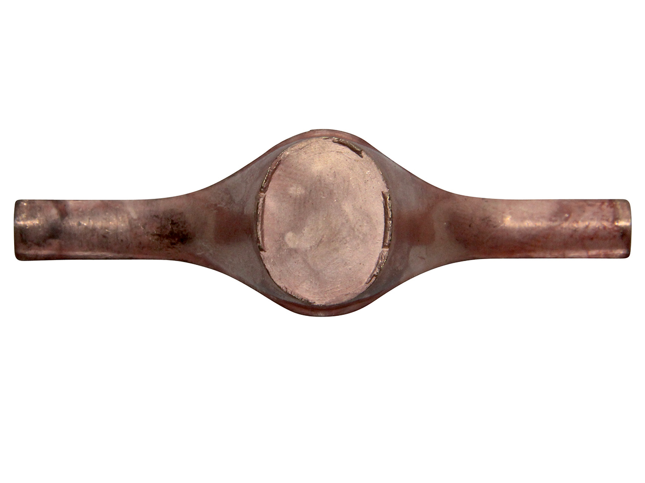 Chevalière massive estampée à plat en or jaune 18 carats. Le plateau de cette chevalière est de forme ovale et mesure 17 par 14,5 mm, et 2,90 mm d'épaisseur. Le poids brut du modèle est de 26 g...