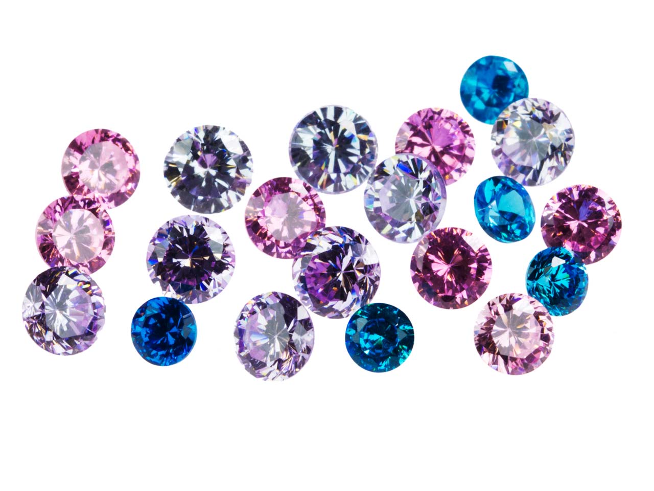 Cubic Zirconium, taille brillant rond. Mélange de couleurs et de tailles entre 2 et 8 mm. Sachet de 20. ATTENTION : les couleurs et tailles peuvent varier légèrement.