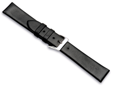 Bracelet montre en cuir de veau bombé Noir, 20 mm