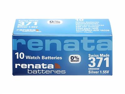Pile Bouton 371 Oxyde d'Argent, 1,55V, boite de 10, Renata