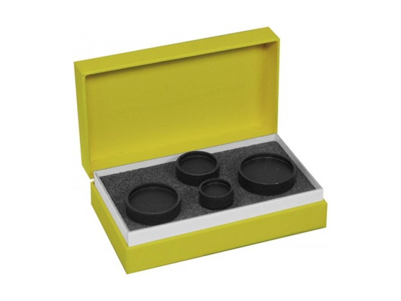 Assortiment de 4 tasseaux à utiliser avec la potence Bergeon pour ouvrir et fermer les boîtes étanches (998 0234). Ces tasseaux servent spécifiquement à ouvrir les boîtes à cannelures des montr...