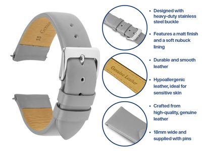 Ce bracelet montre en cuir de veau de couleur Grise a un design moderne, sans couture, avec une finition mate et une doublure en nubuck. Fabriqué à partir de cuir véritable, ce bracelet de mont...
