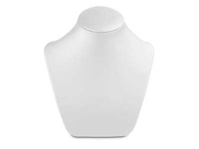 Présentoir buste pour collier, Hauteur : 180 mm - Largeur : 170 mm, Finition simili cuir blanc.