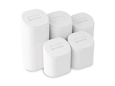 Ce kit de 5 présentoirs à bagues en similicuir blanc est idéal pour la réalisation de votre vitrine et la présentation de vos bagues. Ces blocs mesurent 35 x 35 mm avec des hauteurs de 40, 60, 78, 95 et 115 mm (ces ... Lire plus