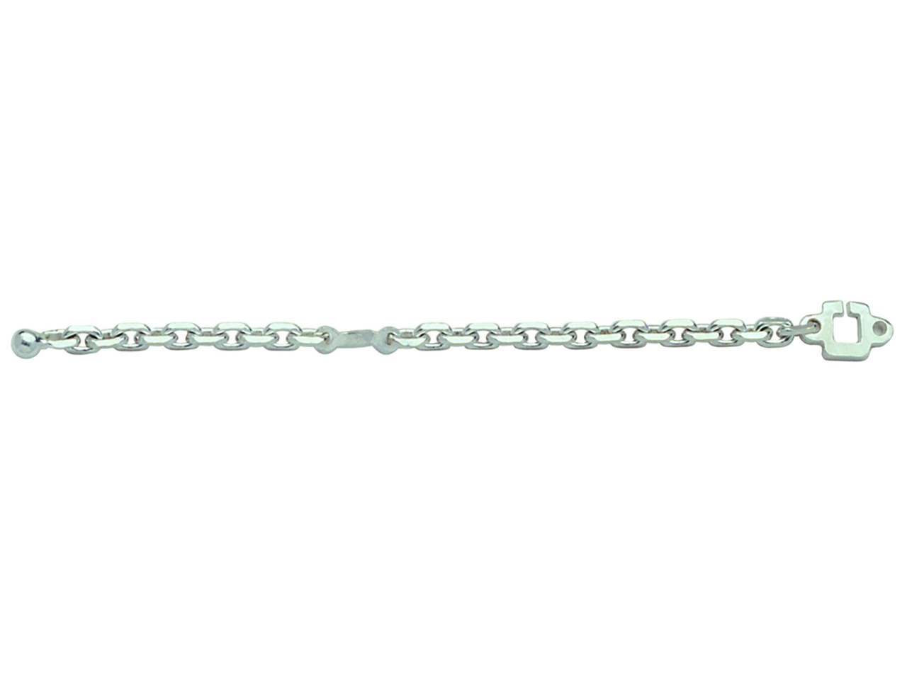 Chainette porte-clé 1901, composée d'une chaine forçat limée de 4,60 mm de large et trois parties fermoir : trois plates réalisées par estampage gage de qualité et longévité, et une boule en fi...