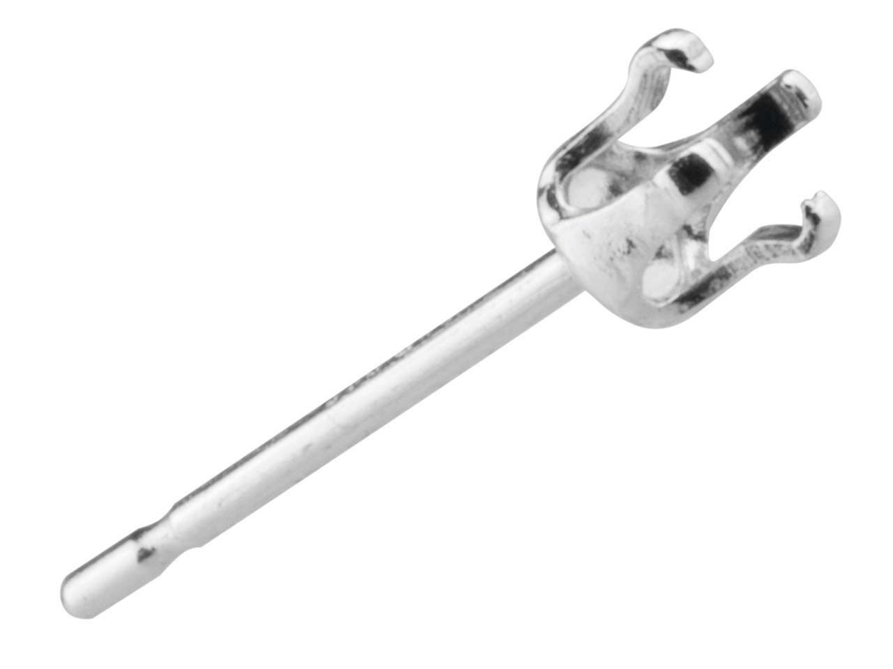 Tige en argent 925 avec chaton 4 griffes d'environ 3 mm, soit pour une pierre ronde d'environ 0,10 ct. Tige vendue à la pièce sans la poussette.