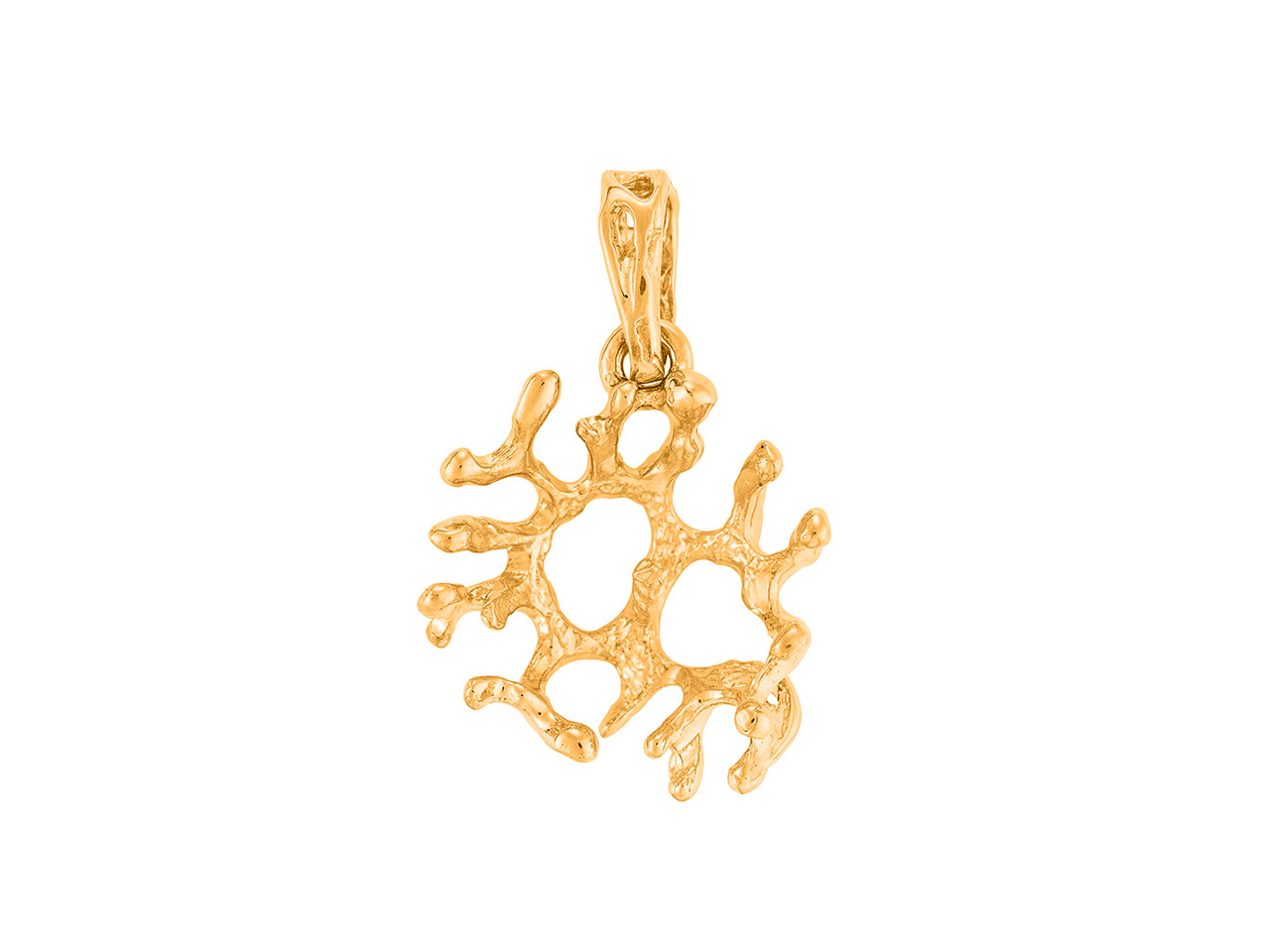 Pour perle de 7 à 10 mm, ce pendentif est en jaune 18 carats en forme de corail. Dimensions : largeur 13 mm, hauteur 13,70 mm. Ce pendentif pour perle existe également en or gris (NN81 0046).