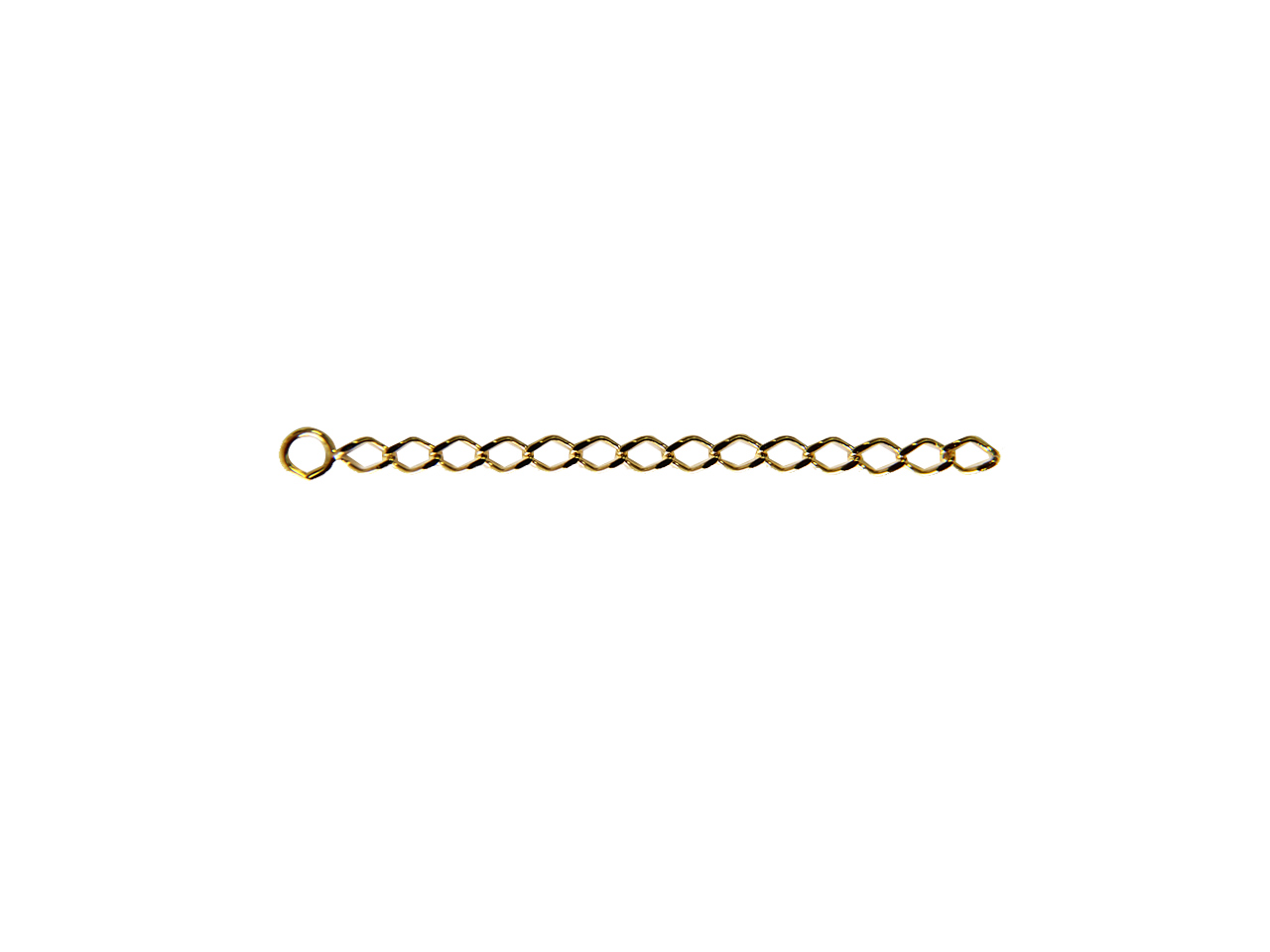 Chaîne d'extension en maille Rombo de 2,70 mm de large. Longueur : 5 cm. Cette chaînette est terminée par un anneau ouvert de 3,80 mm de diamètre avec un fil de 0,07 mm. Plaqué Or 3 microns. LE...