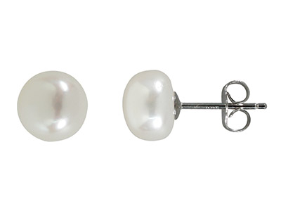 Boucles d'oreilles perle de culture d'eau douce blanche de 8-9 mm de diamètre. BO fixée sur une tige calotte, avec poussette en Argent 925.