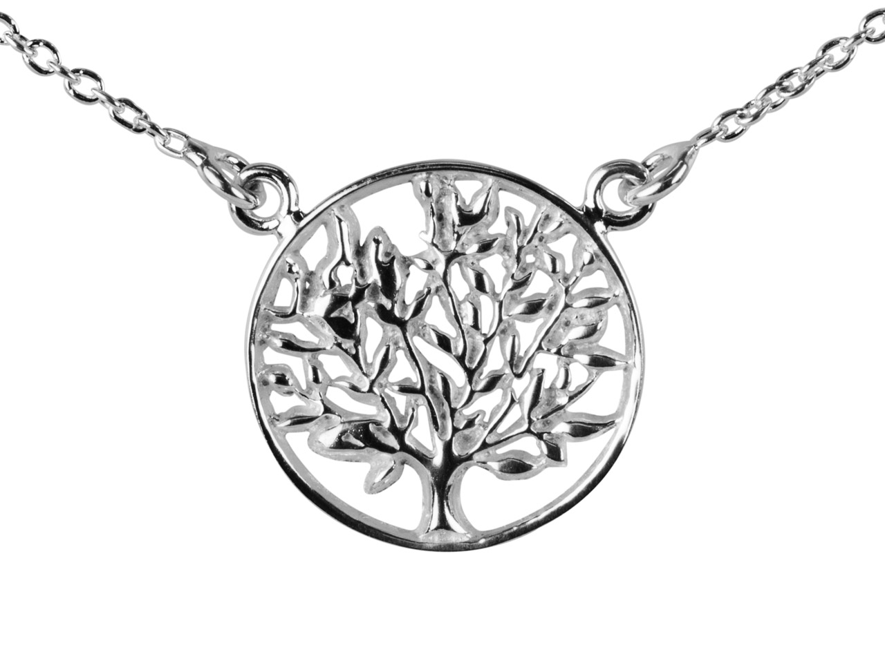 Collier en Argent 925, avec délicat pendentif Arbre de vie. Finition polie. Pendentif attaché à la chaîne par 1 anneau de chaque côté. Dimension du pendentif : 14 mm de diamètre, 1,15 mm d'épai...