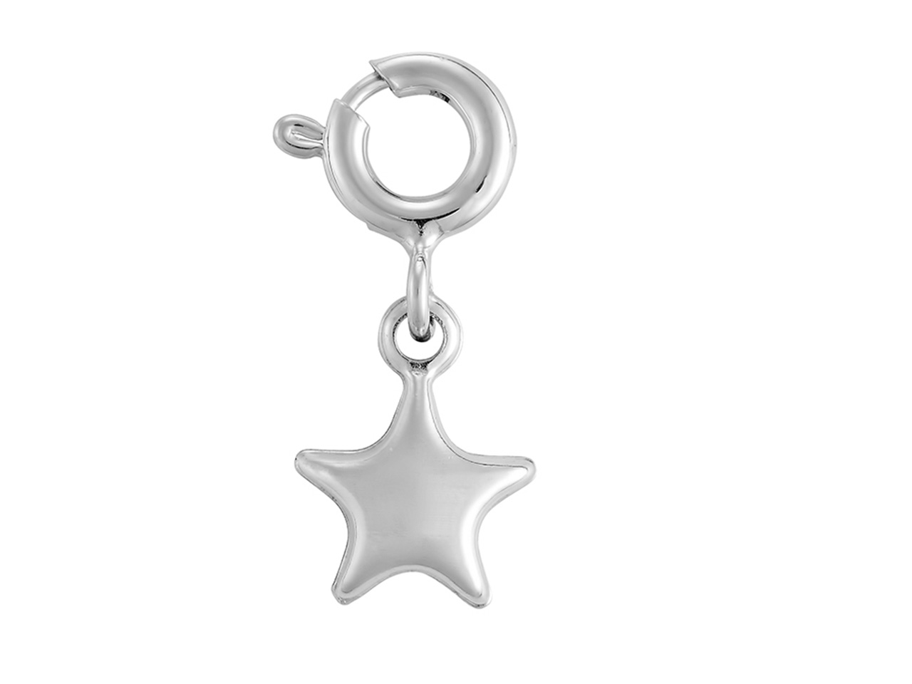 Pampille étoile de 10,30 x 7,80 mm avec un anneau ressort de 6 mm. Cette pampille en forme d'étoile est fabriquée en argent et se mariera parfaitement avec un collier ou un bracelet en or gris ...