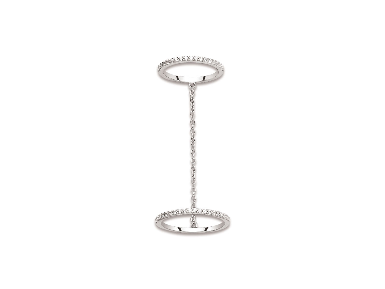 Bague double avec chaîne, 1+1 rang avec Zircones, Argent 925 rhodié, doigt 60/52 - XVFR023N