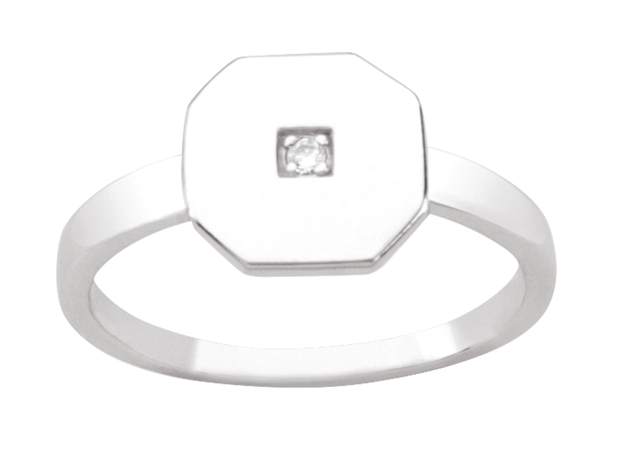 Bague motif Octogone avec un Oxyde de Zirconium, Argent 925 rhodié, doigt 54 - XVFR006H