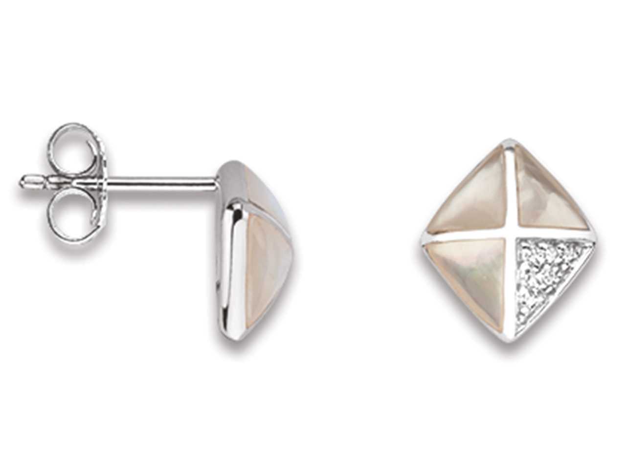 Boucles d'oreilles Zircones et Nacres, 15 mm, Argent 925 rhodié - XVFR5108