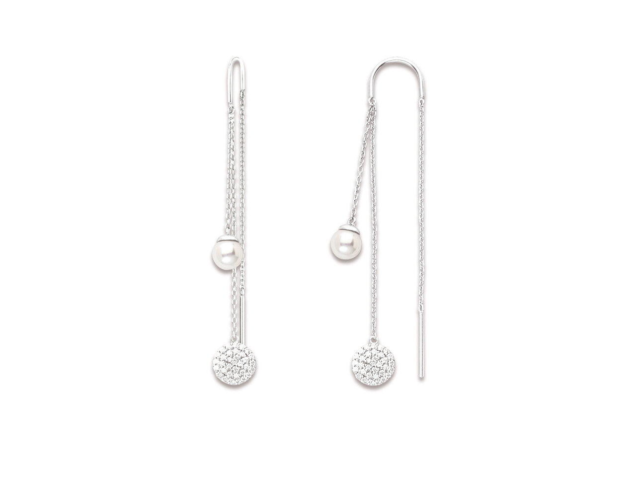 Boucles d'oreilles chaînes pendantes, perles et pastilles Zircones, 55 mm, Argent 925 rhodié - XVFR5091