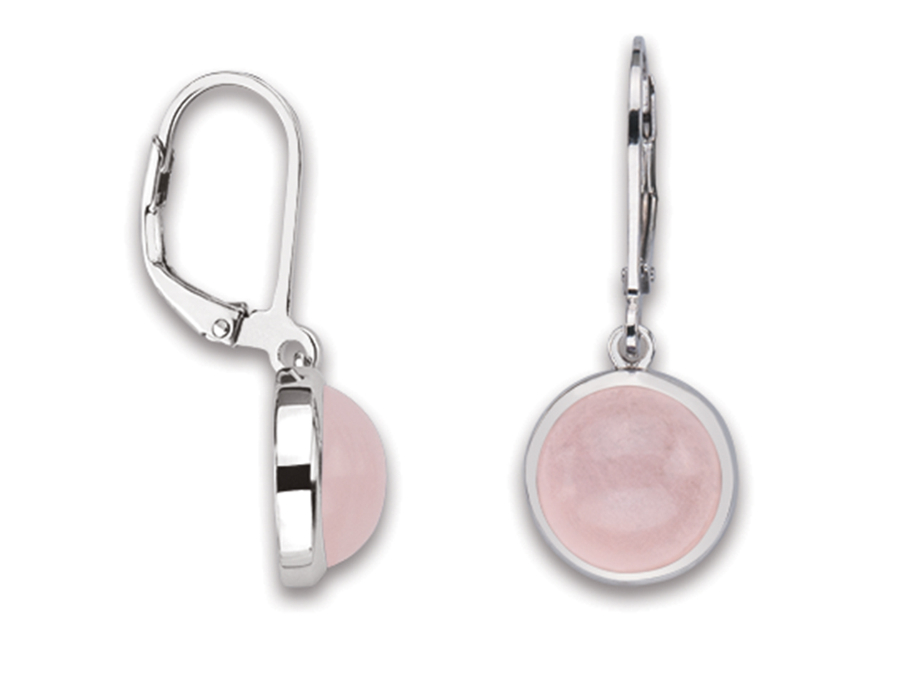 Boucles d'oreilles pendantes rondes, Quartz rose, 27 mm, Argent 925 rhodié - XVFR5118
