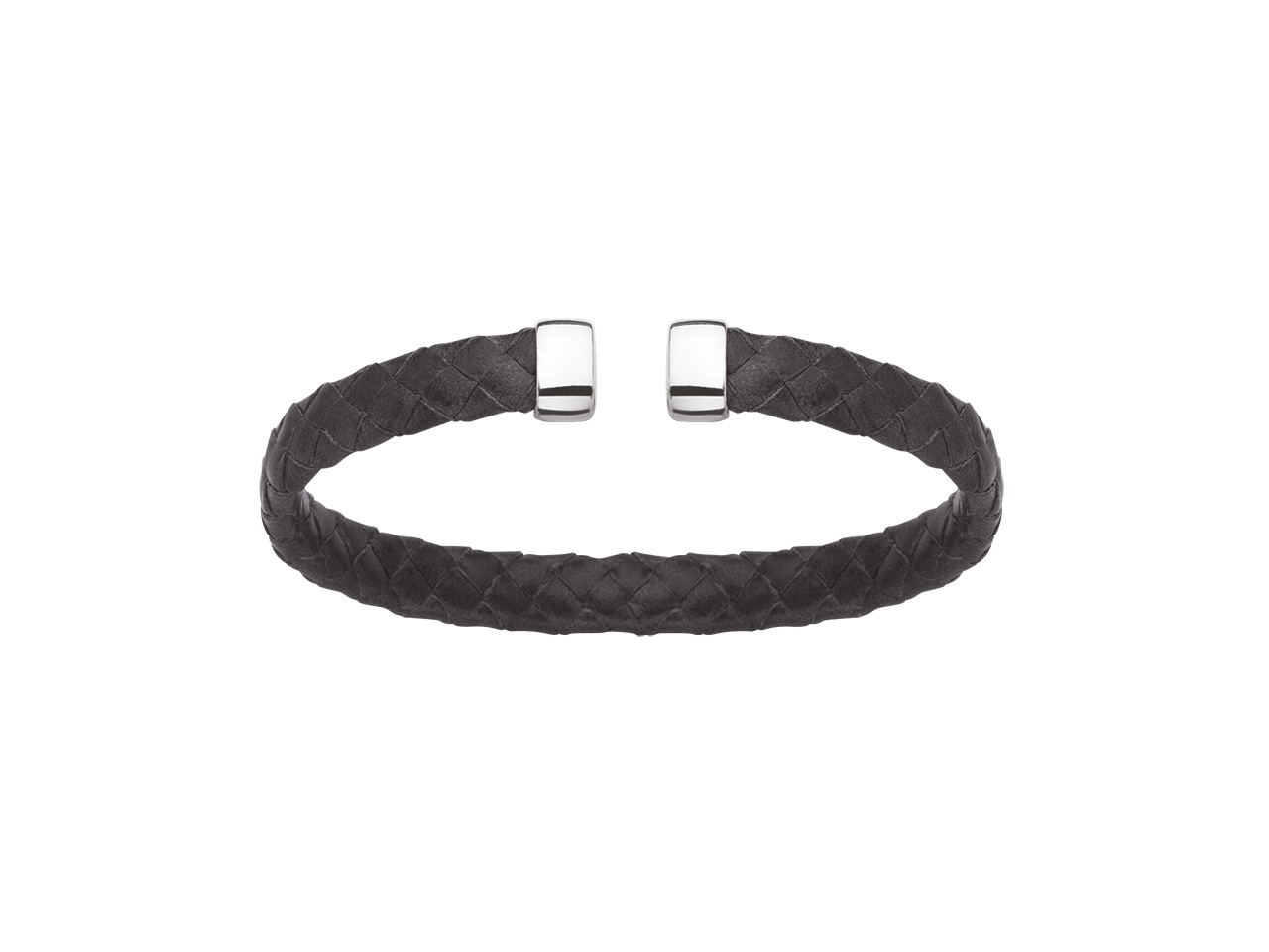 Bracelet Jonc cuir gris 7 mm, 58 x 48 mm, Argent 925 Rh - VVFR5623