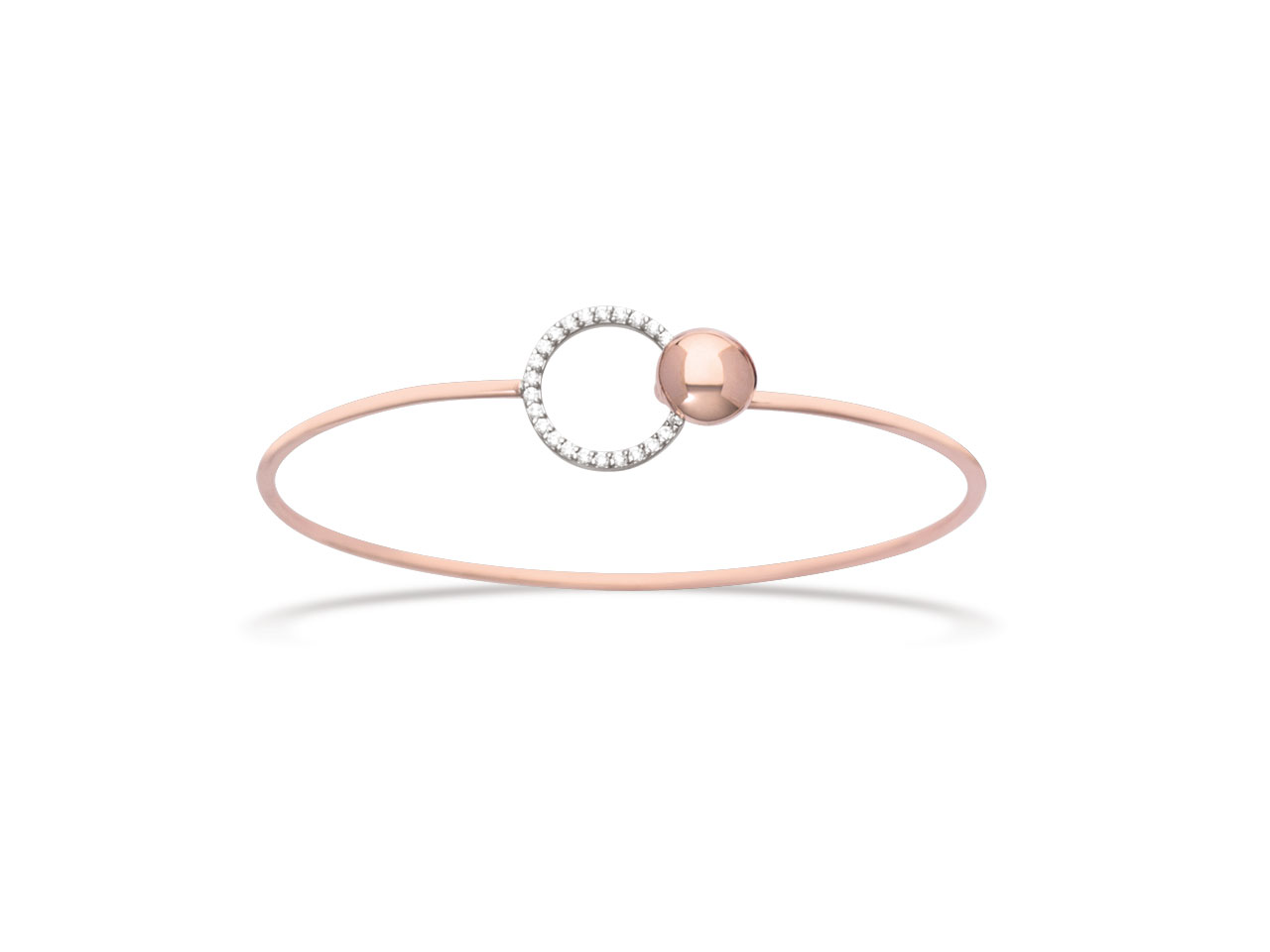 Bracelet Jonc motif Cercle avec Zircones dans Boule, 58 x 48 mm, Argent 925 rhodié plaqué rose - VVFR5536