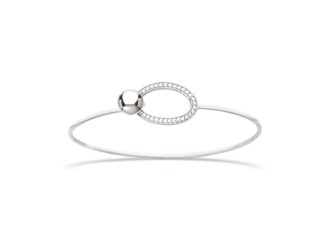 Bracelet Jonc motif Ovale avec Zircones dans Boule, 60 x 50 mm, Argent 925 rhodié - VVFR5539