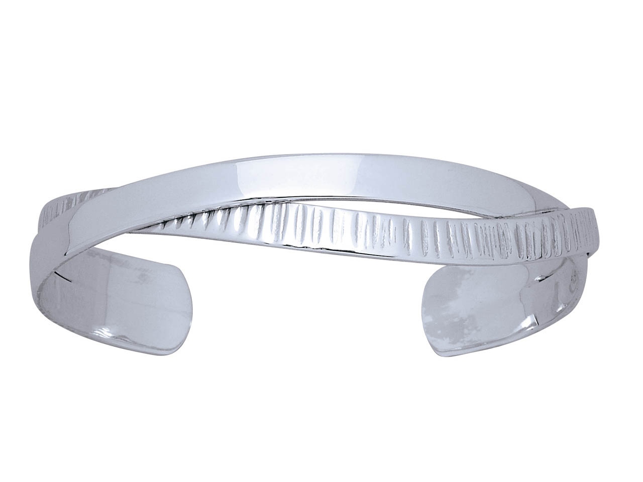 Bracelet Jonc ouvert, bande unie/martelée 12 mm, 60 mm, Argent 925 rhodié - VVFR1056