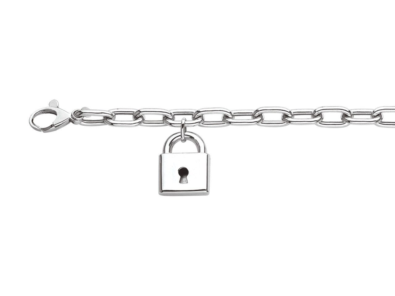 Bracelet maille Rectangle creuse avec breloque Cadenas, 19 cm, Argent 925 Rh - VVFR5612