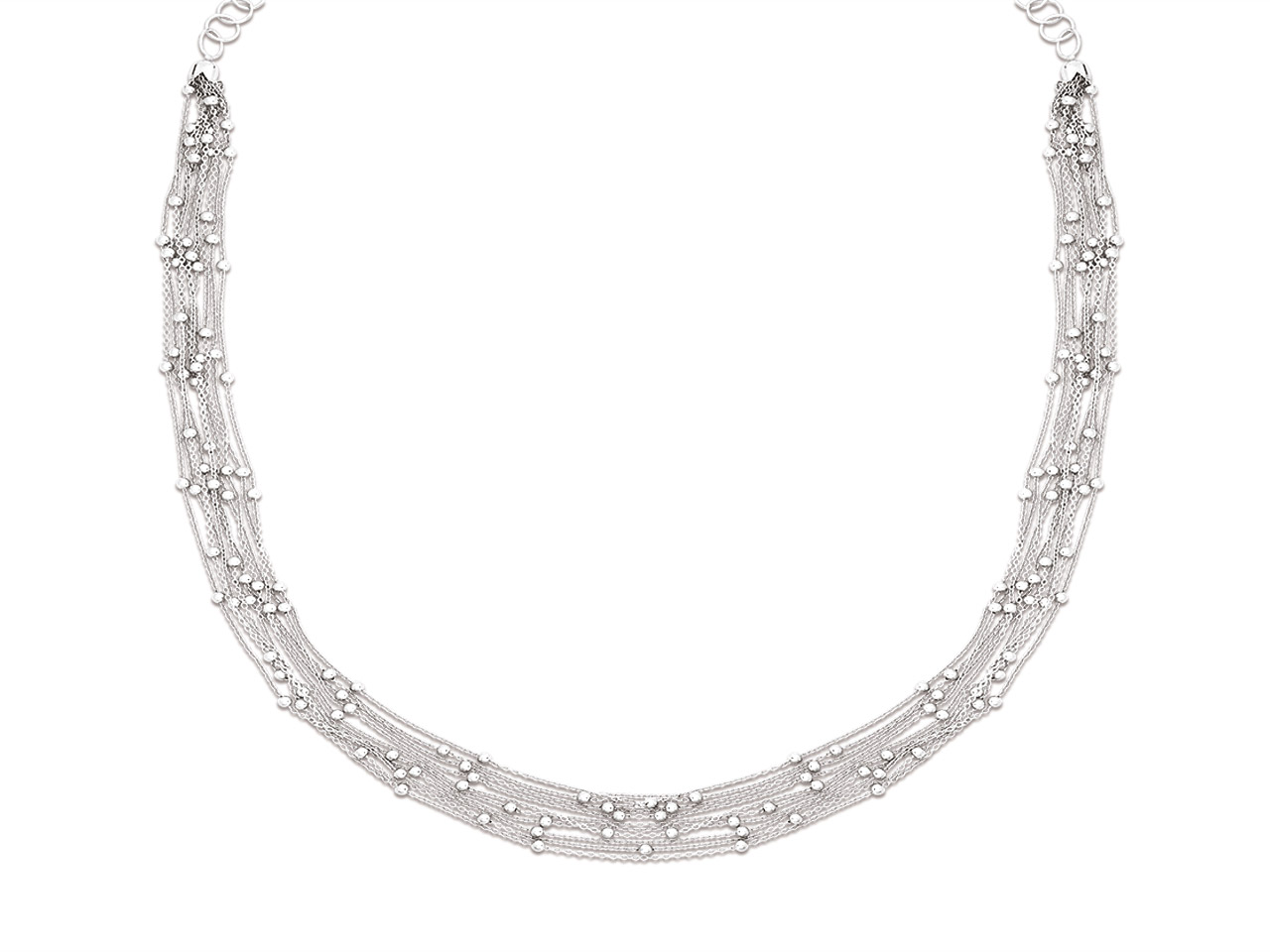 Collier 10 rangs chaîne boules, 42-45 cm, Argent 925 rhodié - VVFR5088