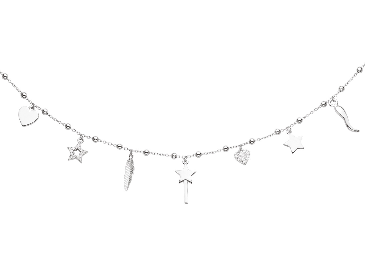 Collier Pampilles et Breloques cristal, 38+5 cm, Argent 925 Rh - VVFR5646