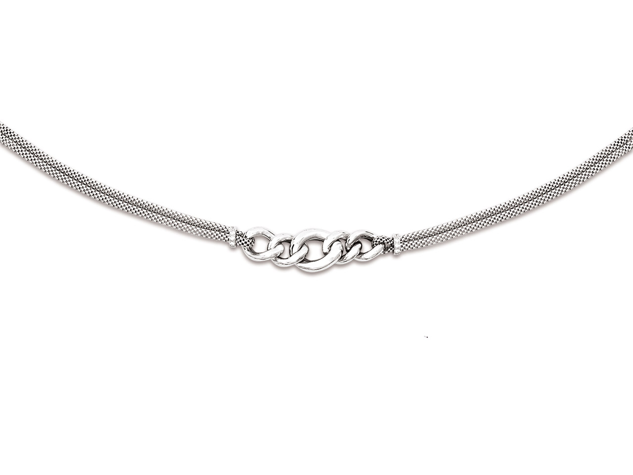 Collier Résille motif gourmette 15 mm en chute, 42-45 cm, Argent 925 rhodié - VVFR5082