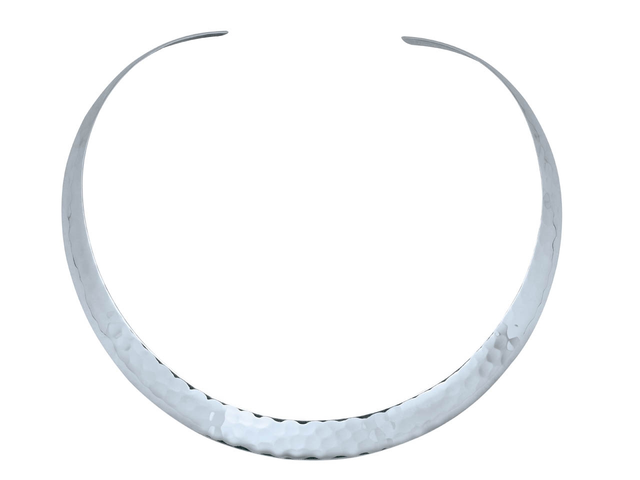 Collier Rigide ouvert bombé martelé 12 mm, 40 cm, Argent 925 rhodié - VVFR1061