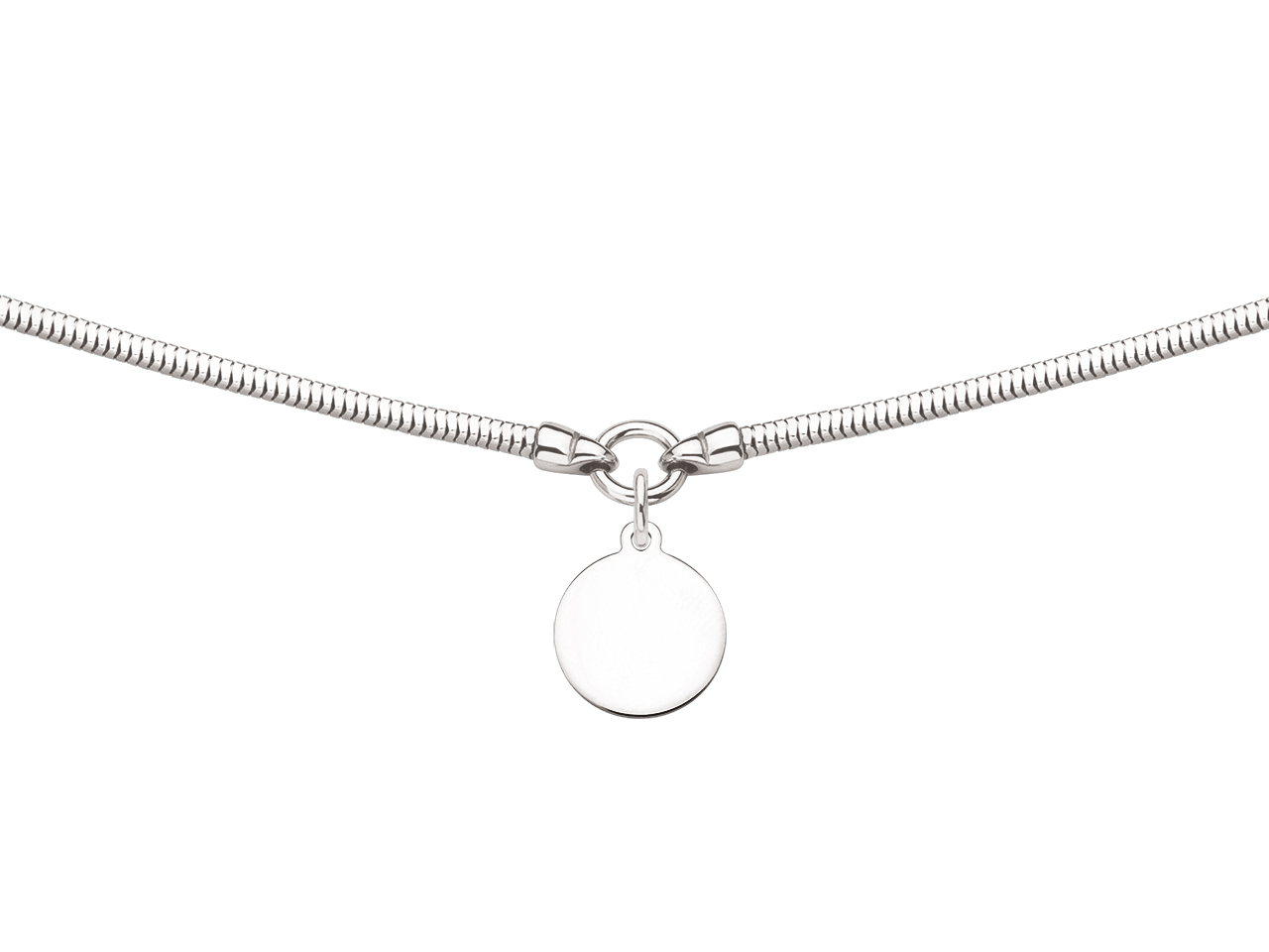 Collier Serpent 2 mm, pendentif Pastille 14 mm, 40-45 cm, Argent 925 rhodié - VVFR5595