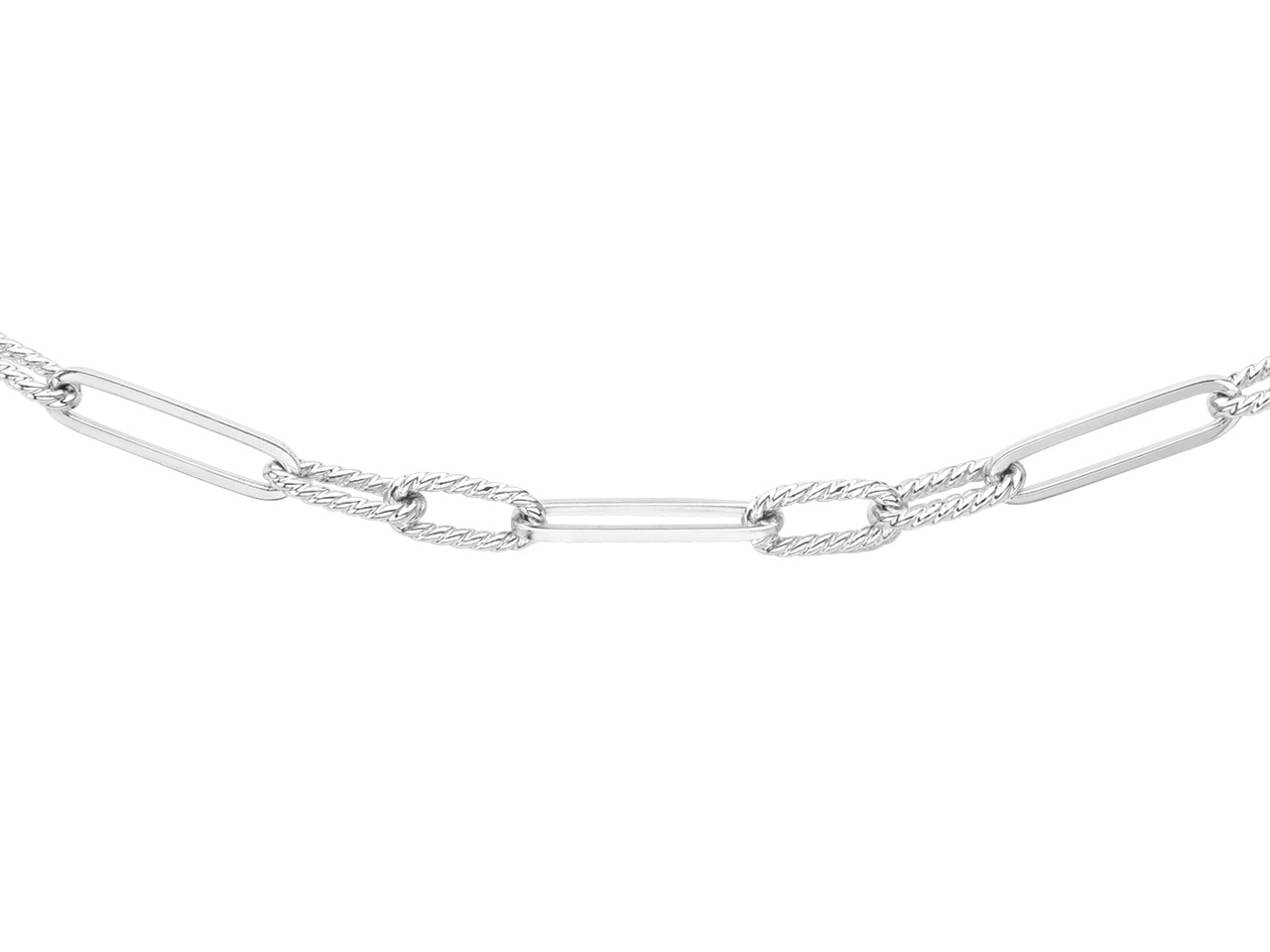 Collier maille Rectangle alternée lisse et godronnée 1/2, 46 cm, Argent 925 Rh - VVFR5609