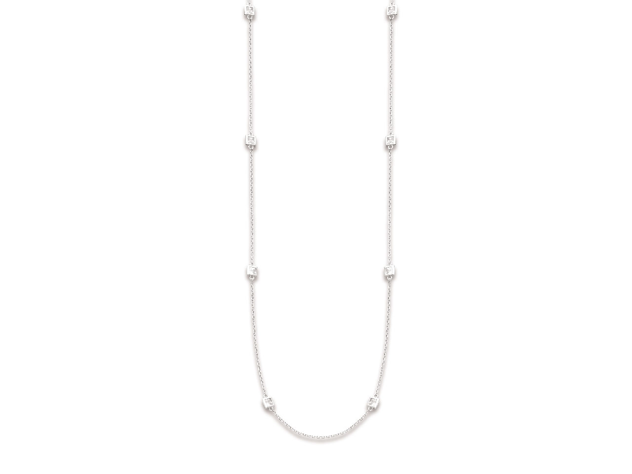 Sautoir 14 pierres Princesses cristaux blancs sur chaîne, 91 cm, Argent 925 rhodié - VVFR5508