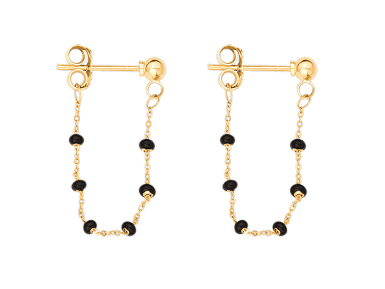 Boucles d'oreilles Boules noires sur chaine doublée 20 mm, Or jaune 18k - XLFR9093