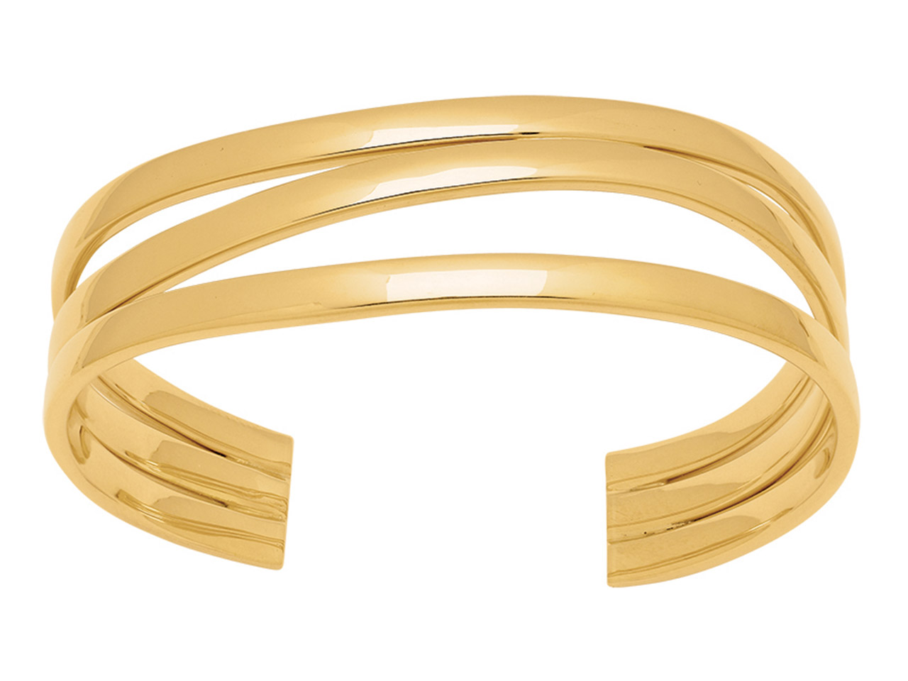 Bracelet Manchette 3 tubes carrés 20 mm forme vagues, 60 mm, Or jaune 18k - VLFR9039