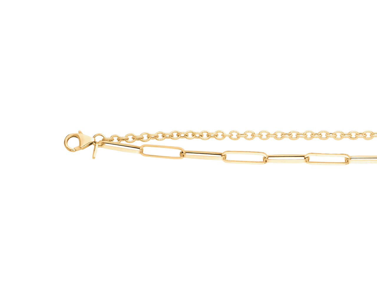 Bracelet double chaîne, maille Rectangle creuse 4 mm et Forçat ronde creuse, 17+2 cm, Or jaune 18k - VLFRA099