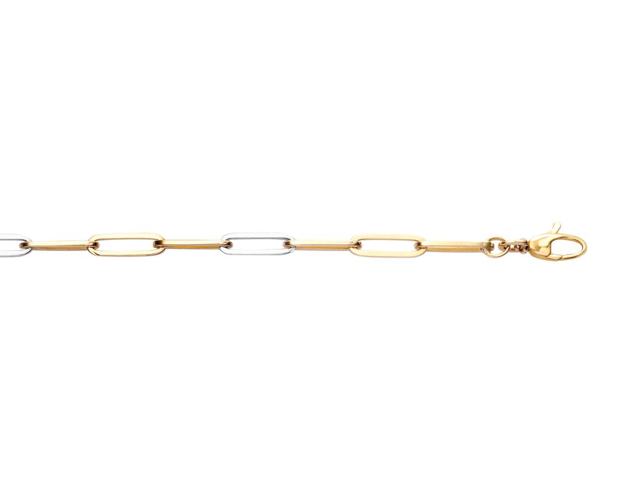 Bracelet mailles Rectangles alternées 4 mm, 21 cm, Or bicolore 18k - VNFR9616