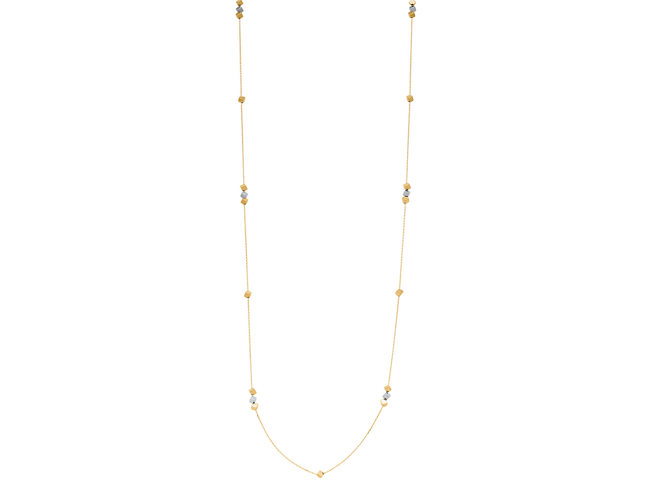 Fermoir : Mousqueton. Chaine : Or jaune 18k. Motifs cubes alternés Or jaune et Or gris 18k.