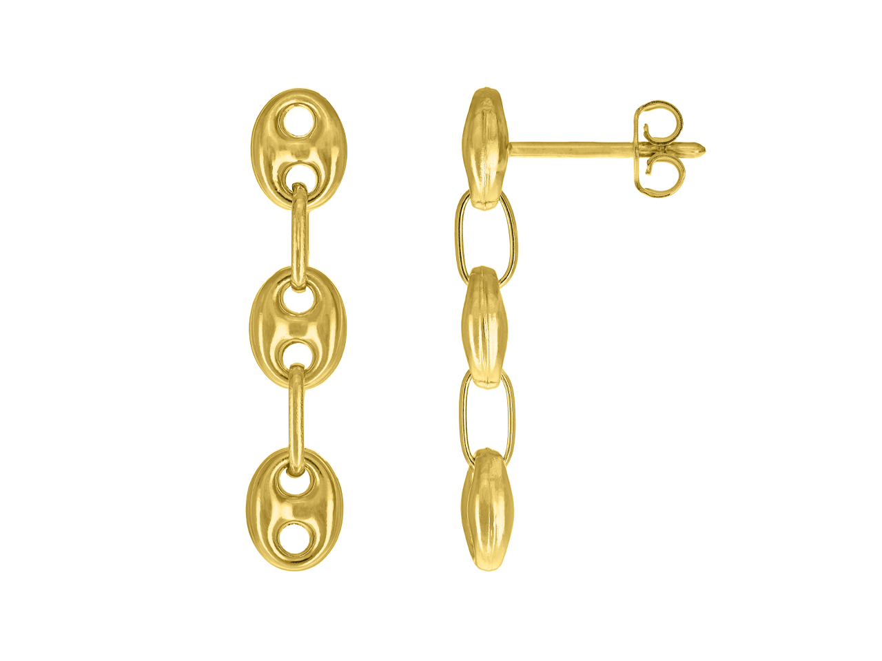 Boucles d'oreilles pendentes linéaires 3 Grains de café 4,70 mm, Or jaune 18k - XLAA0382
