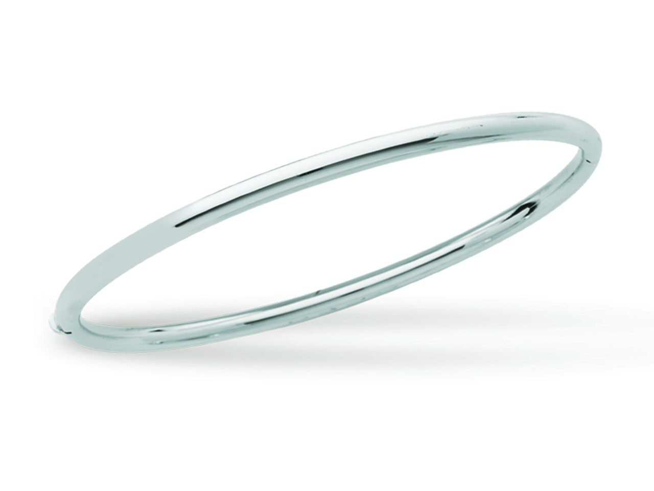 Diamètre du fil ou de la chaine : 3 mm. Diamètre : 58 mm. Fermoir : Cliquet. Or gris 18k rhodié. Forme du fil : Rond. Forme du bracelet : Ovale. Ouvrant.